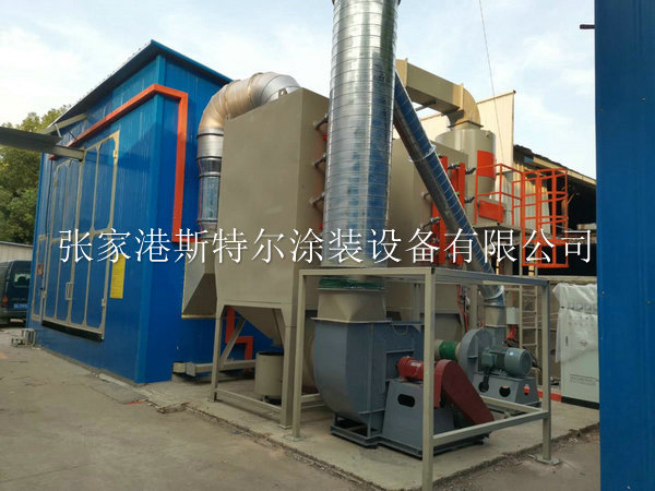 ●噴砂房回收地板為蜂窩地板,維修工作極為簡單快捷,節約了大量的配件更換,降低設備在長期使用過程中的維護成本. ●此結構為我公司應用在多家客戶的環保型氣力回收噴砂房體項目上,此類結構的噴砂房無需基礎。蜂窩式地板的底部均勻布滿了蜂窩式的小斗,這些小斗與小斗下的分氣管路連接,分氣管路與主氣管路的風速均大于砂料的懸浮速度;噴砂作業時,噴出來的砂料全部落到蜂窩式的小斗中,再從小斗落入分氣管中,最后通過主氣管路,回到砂塵分離器中。 ●在的回收利用管道網彎轉位置,設置可拆換式耐磨性能產品板,維持了主觀不太會剎車盤磨損損毀。噴砂平臺: